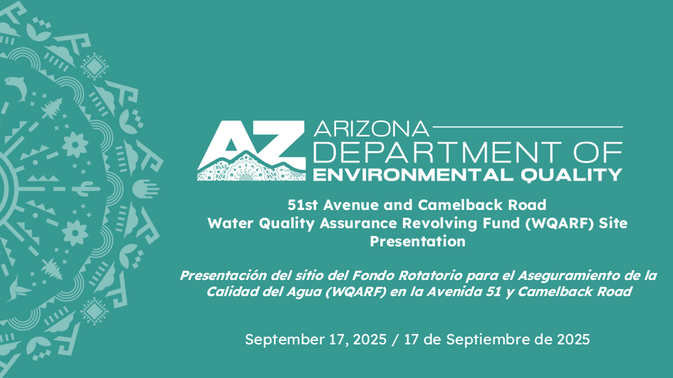 La semana pasada, el Departamento de Calidad Ambiental de Arizona (ADEQ) tuvo una reunión comunitaria sobre el proyecto de remediación del Fondo Rotatorio para el Aseguramiento de la Calidad del Agua (WQARF) de la Avenida 51 y Camelback. Este proyecto incluye la instalación de pozos de monitoreo, así como muestras y análisis de aguas subterráneas para evaluar la calidad del agua en la zona.