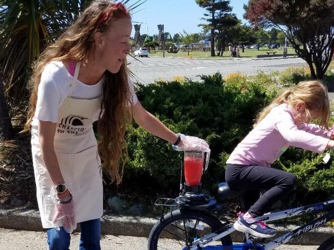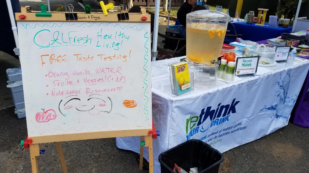 One of our success stories is the farmers' market promotional campaign, "Nutrition Across the Lifespan", which we launched this summer from June to August 2022 at the Downtown Farmers & Artisan Market, partnered with Del Norte County Public Health. We provided seasonal fruit and vegetable taste-testing activities, a Rethink Your Drink promotion, cooking demonstrations, gardening, and Smoothie Bike.