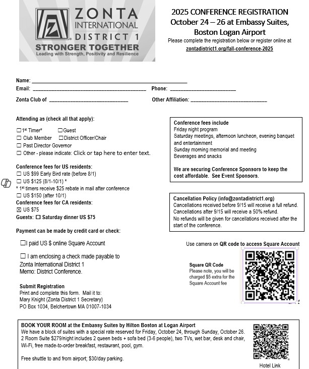 1:15 Zonta Business and Election Results