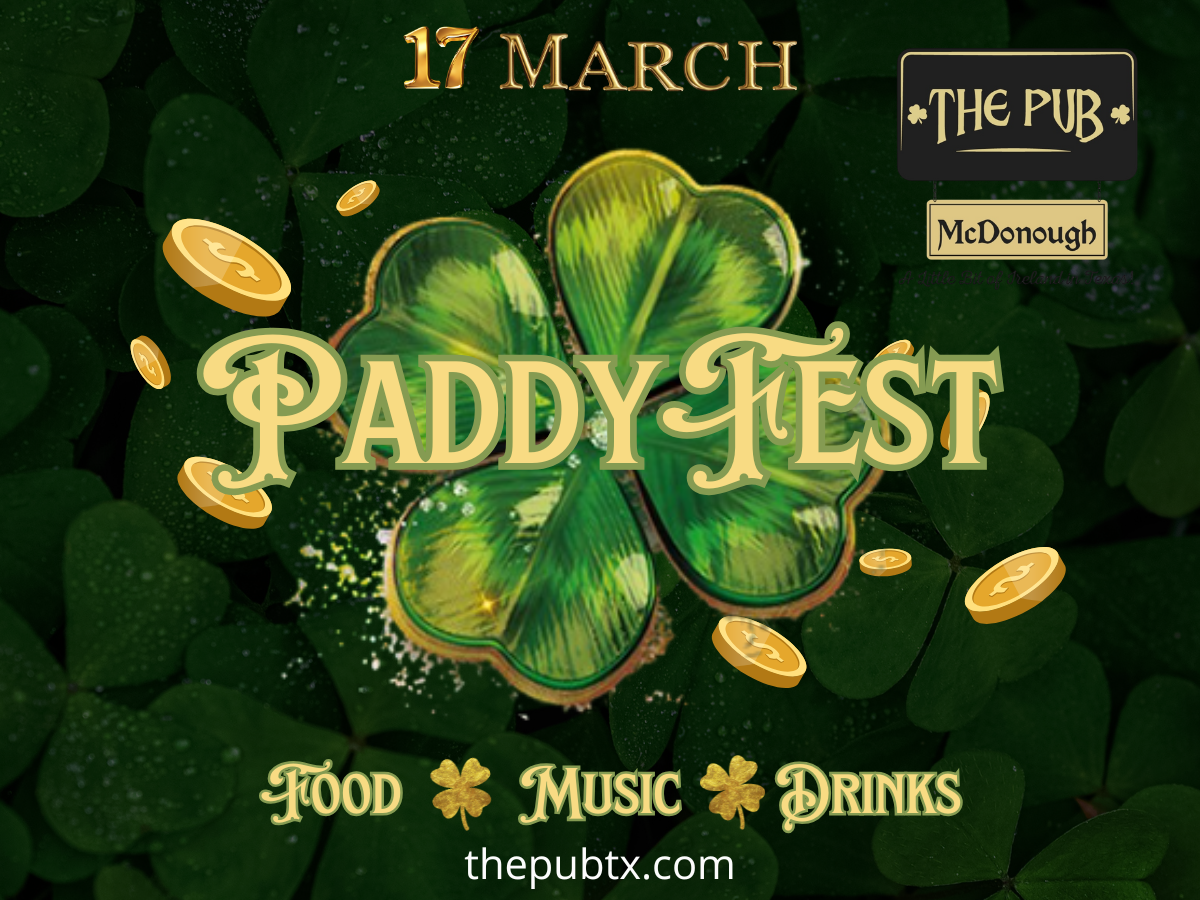 In celebration of St. Patricks Day, our Pub McDonough is pulling out all the stops for a two day festival, PaddyFest. Head to the Pub Monday March 16th for live music by Plunk Murphy 5-8pm. On Tuesday March 17th live music will begin at 1pm with KinFolk and The Travelling Murphys 6-9pm.