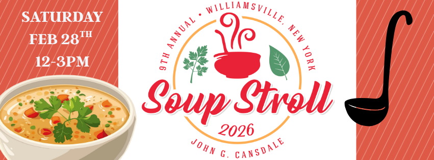 Cris Hicks will represent Calvary Church at Williamsville's Annual Soup Stroll to benefit FeedMore of WNY this Saturday, February 28. She will be serving "Lenten Lentil" soup, a vegetarian option, from Noon to 3 p.m. at the Eagle House. At Soup Stroll, a 3-ounce sample is available for $2 each at many locations on Main Street.