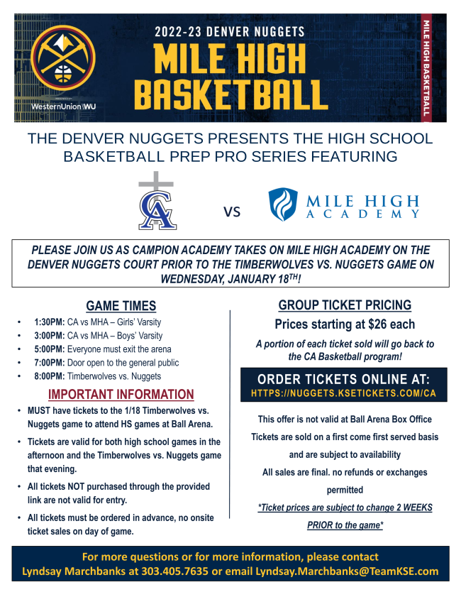 To order, visit www.campion.net or contact Cindy Santana at 970-310-5849. Please come and support our Drama Club and Senior Class of 2023!