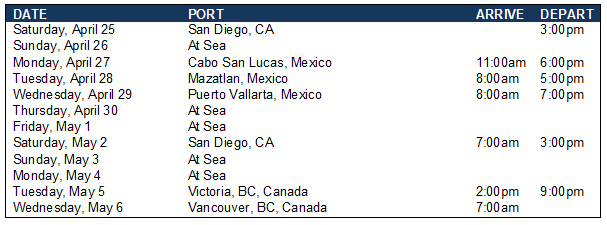 Featured cruises are per person based on double occupancy and are subject to availability. Package rates are for inside cabins, include port & government fees, and economy class air from select air gateways unless specified. Airport taxes and ground transportation is additional. Offers may be removed without notice and our lowest price guarantee is based on cruise line terms and conditions.