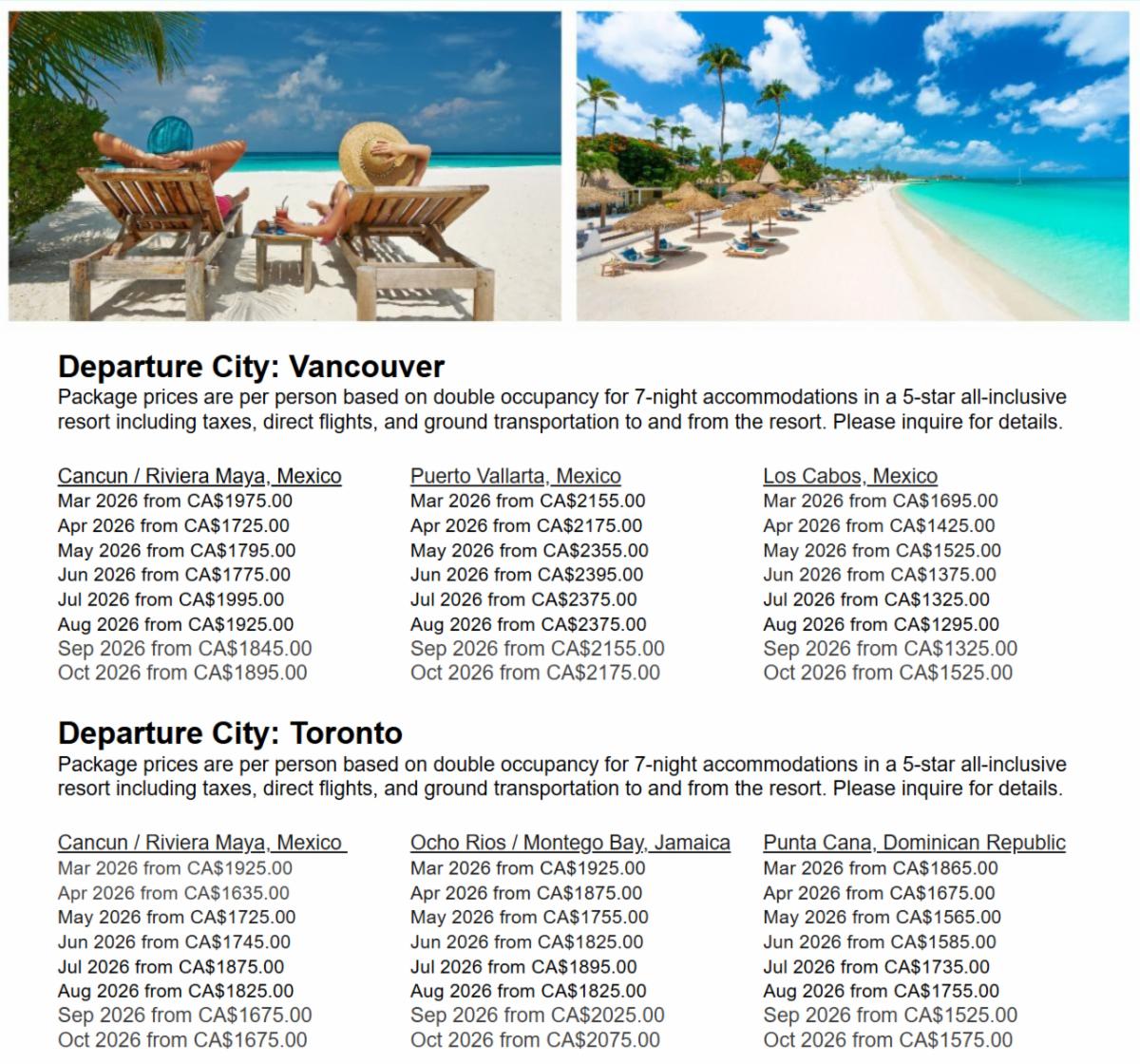 Air included Vancouver. Add $375.00 Toronto Please inquire about other air gateways Limited Time Offer - expires February 16, 2026