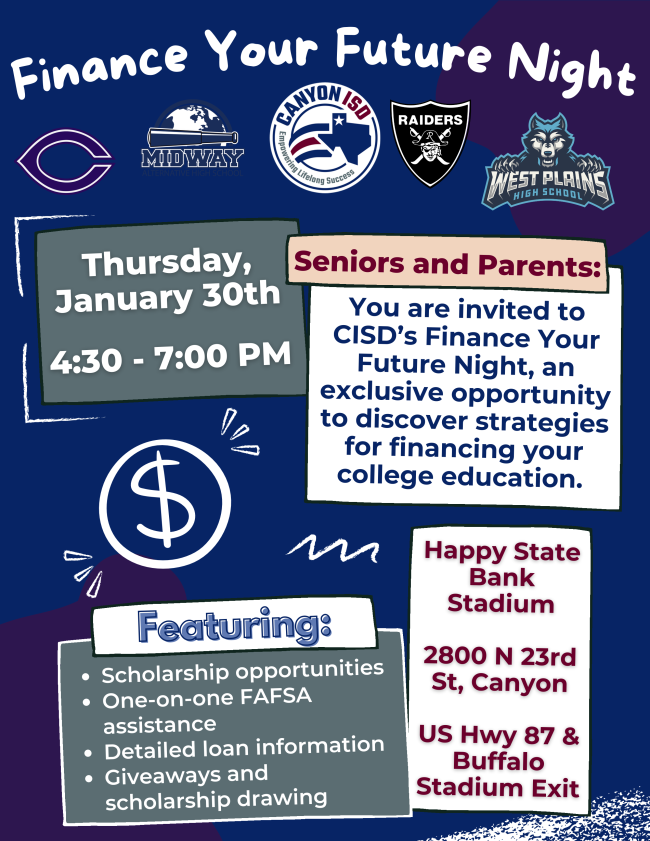 This event, held at the Conference Center at Happy State Bank Stadium, is your chance to learn about managing finances, preparing for college, and making smart financial decisions.