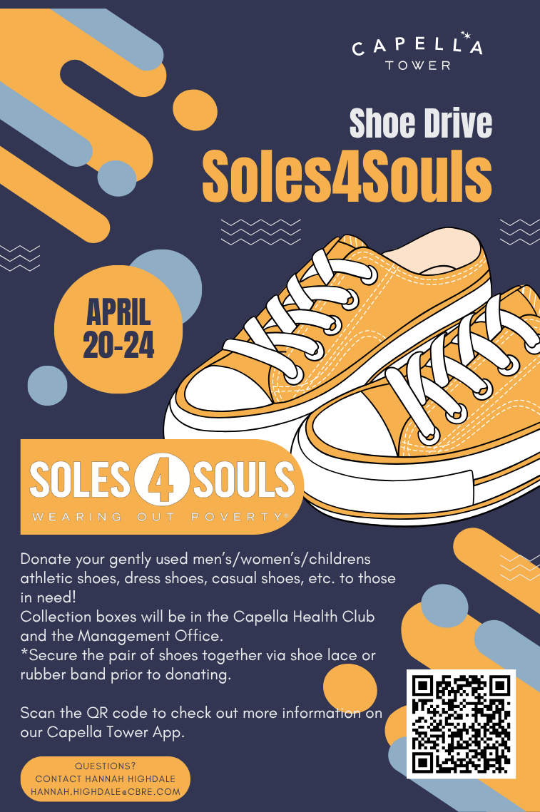 Soles4Souls sits at the intersection of human opportunity and excess product. We are footwear-first, meaning we focus on one of the most overproduced and underutilized categories in the world — turning surplus into possibility. Capella Tower is hosting our very own Shoe Drive and we will have a positive impact on the environment and create meaningful opportunities for people in need around the globe!