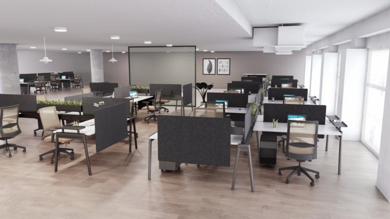 bench has evolved to accept perpendicular work surfaces and support a wider range of applications. With linear and 90 degree planning options, RockIt creates workspaces for individual, collaborative and integrated work styles in open environments. It delivers convenient access to power, supports wellbeing through height adjustability and the addition of surface-mounted privacy screens addresses the need for acoustics and privacy.