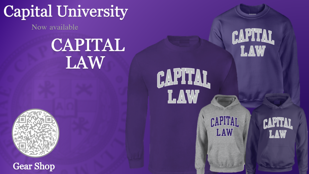 We are excited to announce that we finally have Capital University Law apparel at the Gear Shop, including hooded fleece, crewneck sweaters, and long-sleeve T’s in gray and purple. Please check them out at the Gear Shop in the Student Union on the Bexley campus, or shop online at www.capital.getugear.com and pick up in store or ship home.