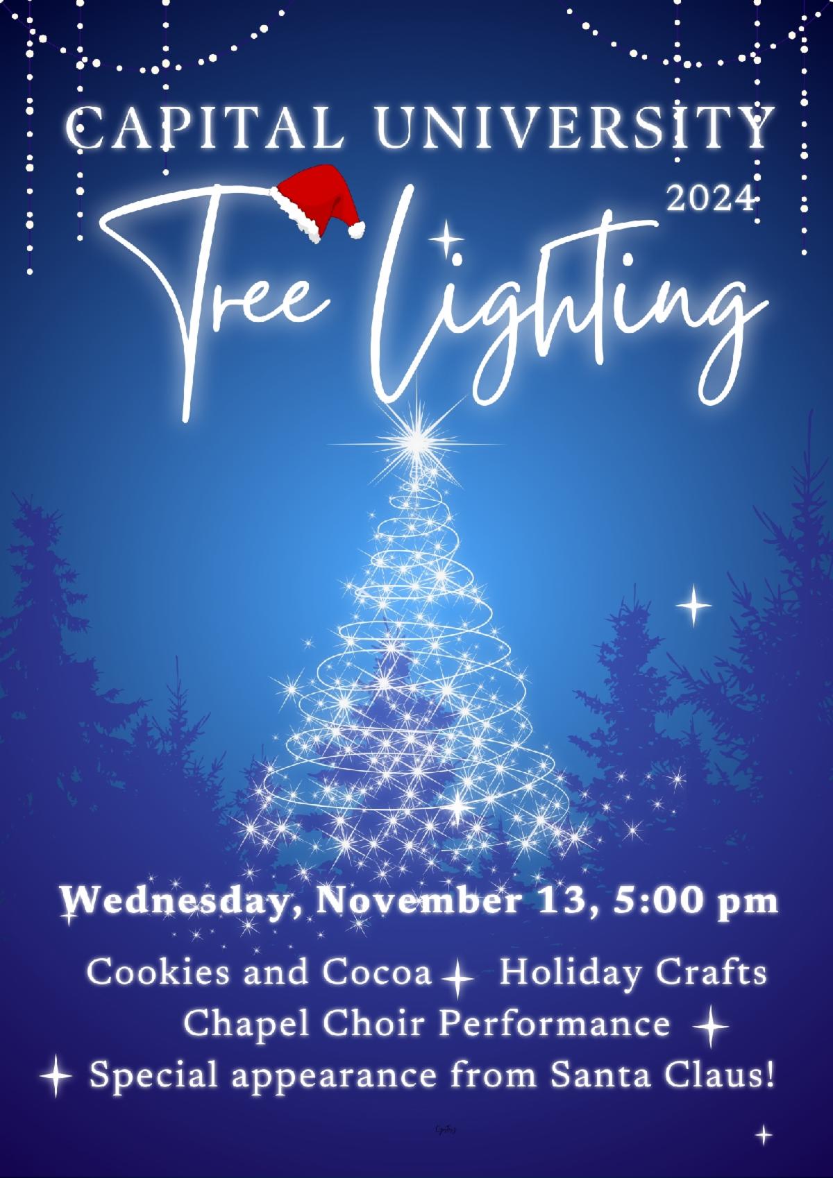 Save this Date! The annual Capital Tree Lighting will be held on Wednesday, Nov. 13 at 5:00 p.m. at The Fountains on Bexley’s Main Campus. In addition to the official tree lighting, guests will enjoy a live performance by The Chapel Choir from the Conservatory of Music and welcome a visit from Santa Claus! Cookies and cocoa and holiday art and craft-making will also be a part of the evening’s festivities. Make plans to join us for this annual tradition as celebrate the start of the holiday season. | |