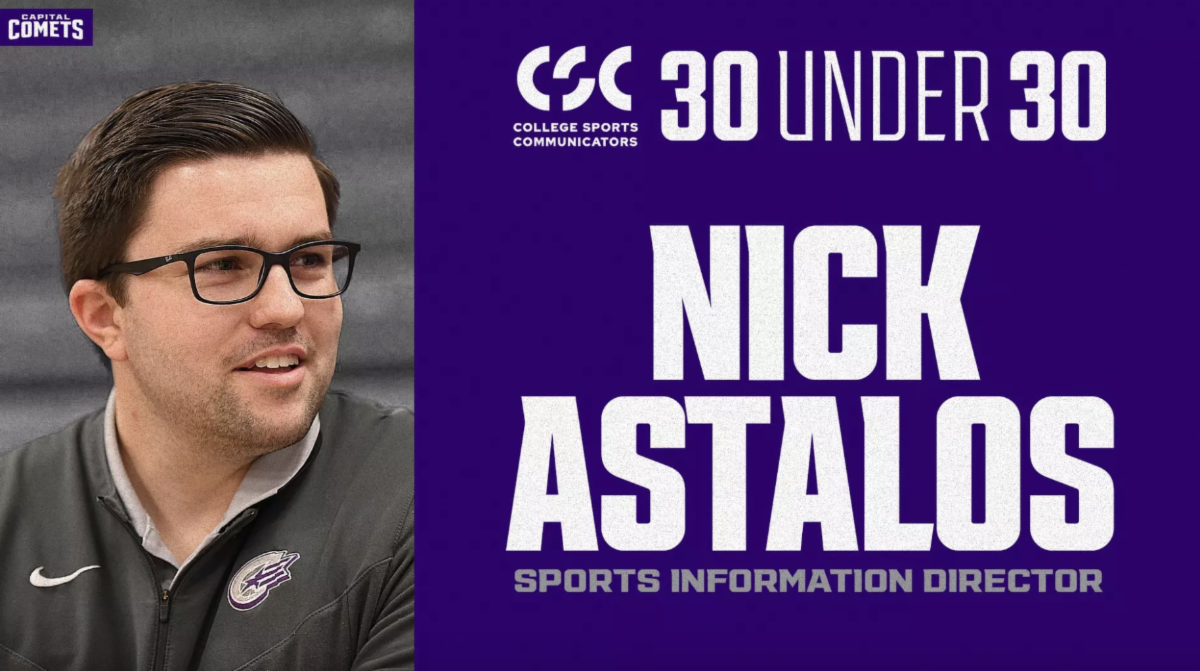 Nick Astalos, director of Sports Information, was named to the College Sports Communicators “30 Under 30” Class for 2024. Candidates were considered based on achievement in areas such as professional success, impact on their athletic department or conference office, and service to CSC. Click here for more information.