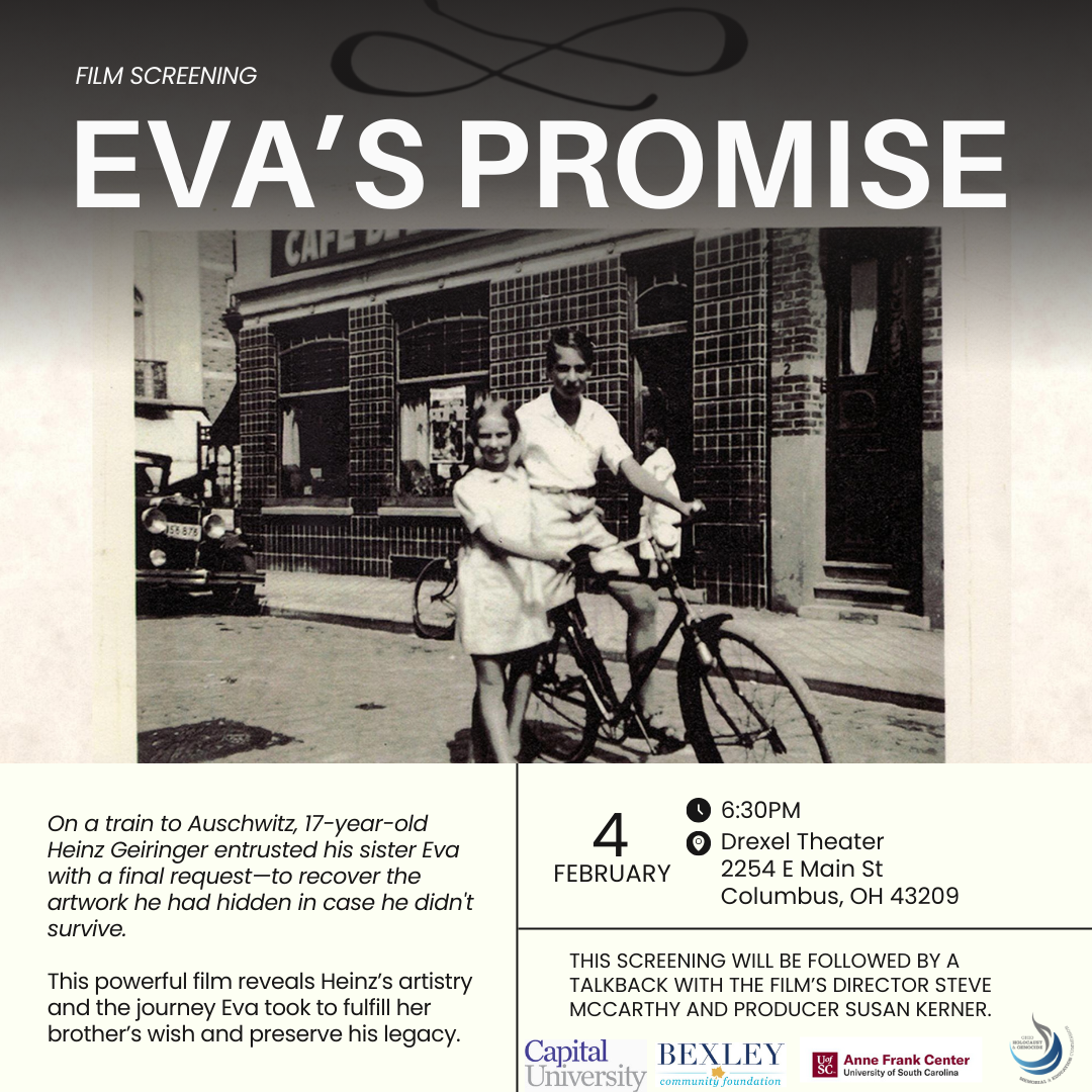 This film event is hosted by Capital University and the Ohio Holocaust and Genocide Memorial and Education Commission. See it at the Drexel Theater and stay for the Q&A with the film’s producer, Susan Kerner, and director, Stephen McCarthy. About the film: On a train to Auschwitz, 17-year-old Heinze Geiringer entrusted his sister Eva with a final request – to recover the artwork he had hidden in a case he didn't survive. This powerful film reveals Heinz's artistry and the journey Eva took to fulfill her brother's wish and preserve his legacy.