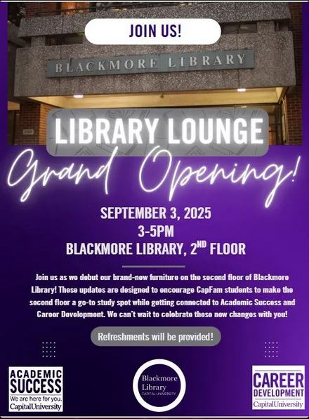 | Capital University transforms lives by empowering an inclusive community of learners through engaging academic, co-curricular, and professional experiences. | | Library Lounge Grand Opening | |