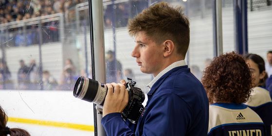 For most athletes, sports are about competition, camaraderie, and personal achievement. For Jay Schmoldt `27, marketing major, sports are also about storytelling, capturing the emotion, movement, and excitement that make the games unforgettable.