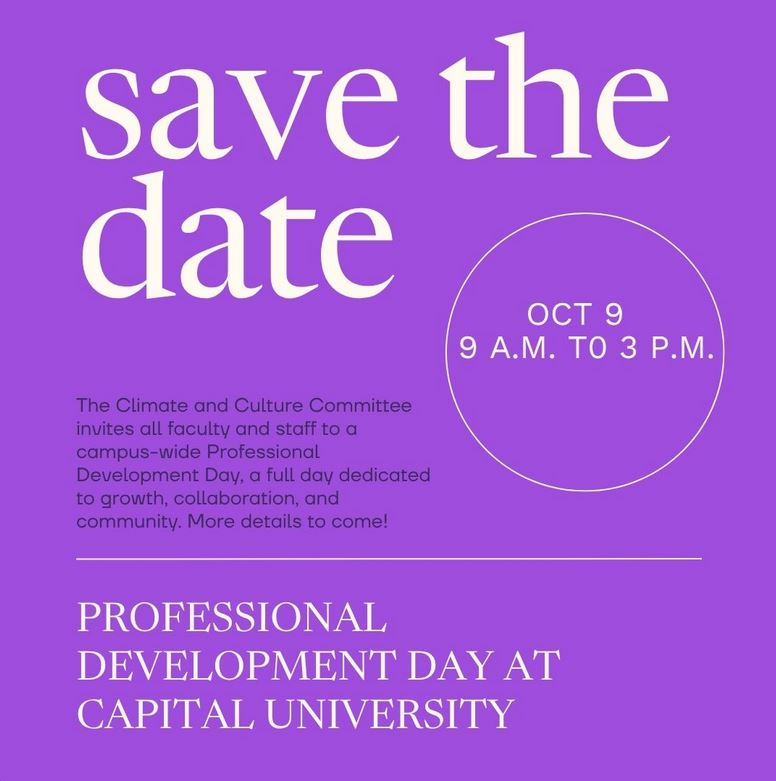 Mark your calendars! Capital’s second annual Professional Development Day returns on Thursday, October 9, from 9 a.m. to 3 p.m.