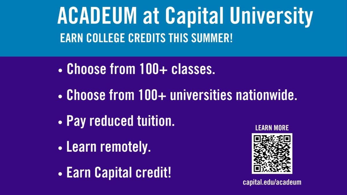 | | Thinking of taking summer classes? New this year is Acadeum, a collaborative agreement between Capital and more than 100 universities across the country. Acadeum allows students to take a wide variety of online classes through these institutions, pay our reduced summer tuition rate, and receive Capital University credit. | | Flag Carriers Needed for Graduation | | |