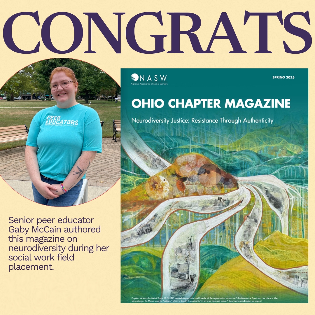 Capital senior and peer educator Gaby McCain authored a magazine on neurodiversity justice for the NASW Ohio chapter during her senior social work placement. Read the magazine at https://tinyurl.com/naswoh-neurodiversity.