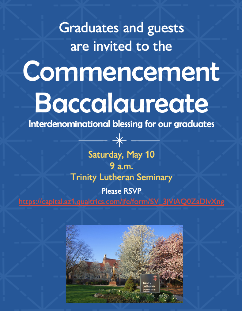 TRINITY LUTHERAN SEMINARY Commencement is Saturday, May 24
