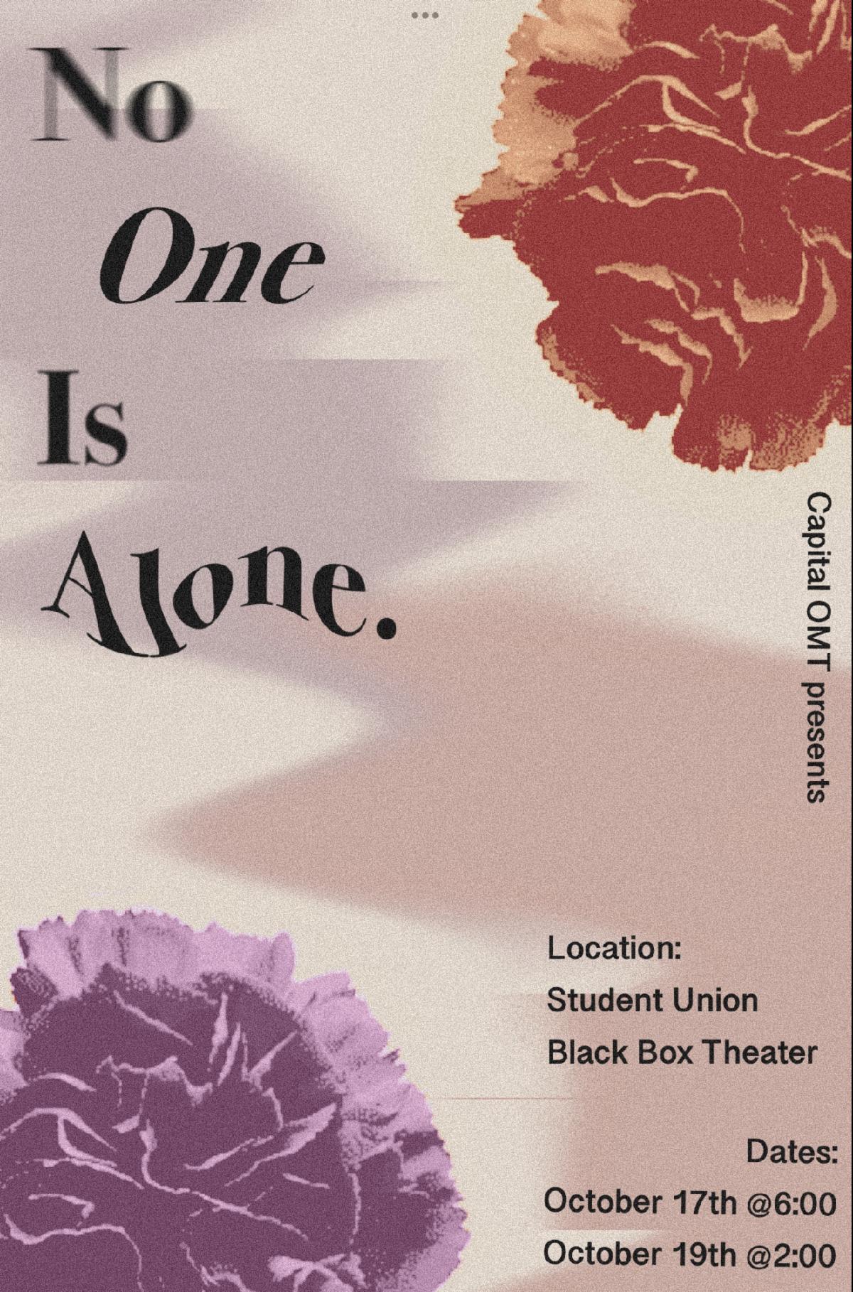 For tickets, go to https://www.simpletix.com/e/capital-omt-presents-no-one-is-alone-tickets-237307#smtx-click. Capital students, faculty and staff can each receive one free ticket by using the promotional code CAPFAM.