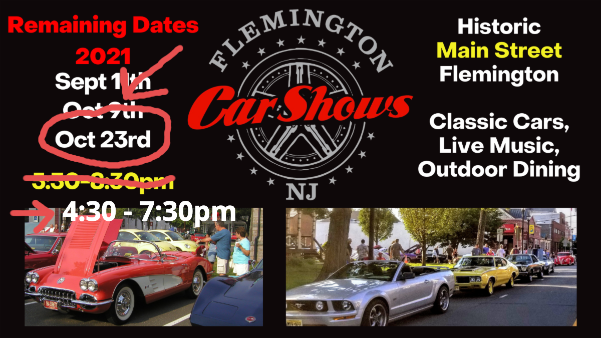 Stroll beautiful historic Main Street with your family & friends, enjoy live music, and check out the coolest cars in Flemington! Indoor and outdoor dining, and fun door prizes. Free event.