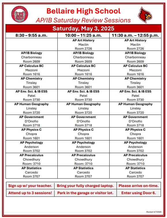 When absent, students should turn in an excuse note (doctor’s, parent, etc…) to Ms. Espadas for filing. As a reminder, a minimum attendance requirement of 90% in each class is required to award course credit.