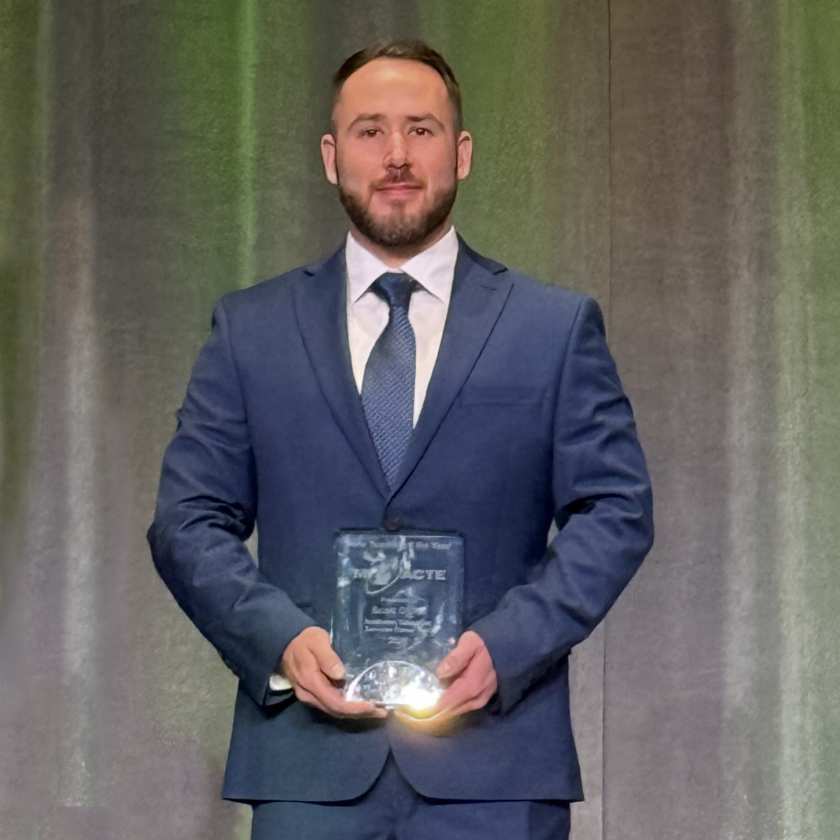 For the third consecutive year, a member of our staff has been named a state champion. We are proud to announce that Scott O’Dell, our third-year Aviation Maintenance teacher, has been named New Teacher of the Year by the Michigan Association of Career and Technical Education (Mi ACTE).