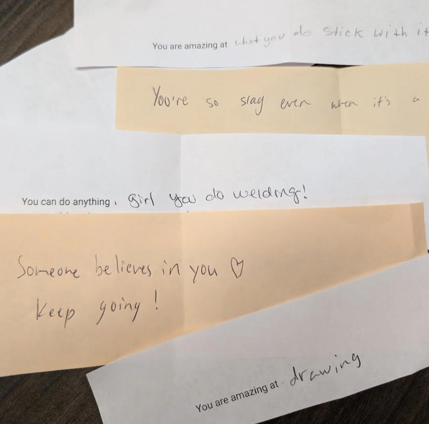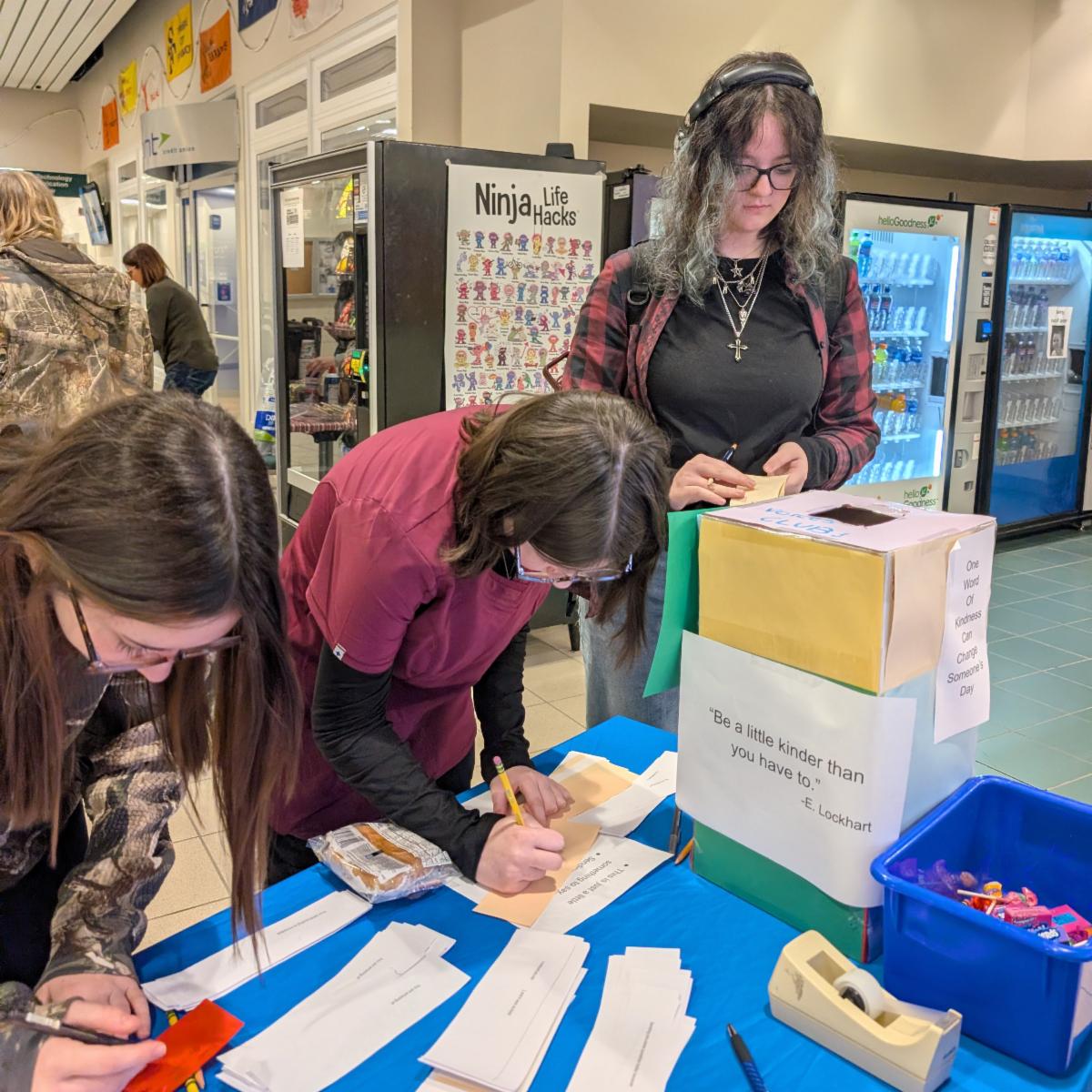 The Voices Club at Career Tech kicked off their first school-wide activity with "Random Words of Kindness." Students had the opportunity to write supportive words to others in the school. The writer decided if they wanted to remain anonymous or not, whether they had someone specific to send the encouragement to or if they wanted their words to be given to someone in a specific program. Over one hundred words of kindness were distributed throughout the week. Voices Club members delivered the notes and were pleased to see the joy it brought to others. The club members are hard at work on their next school-wide project that will continue to focus on support for fellow students.