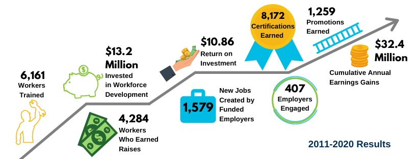 The impact CareerEdge continues to make is resounding in 2020, for every dollar invested in workforce development the return on investment is $4.72. Last year CareerEdge and its employer partners invested $1.25 million in workforce funding resulting in $2 million in economic impact for the community from new wages and raises. In 2020 even with the impact of COVID on our workforce climate, CareerEdge trained 184 workers last year, 523 workers earned raises.
