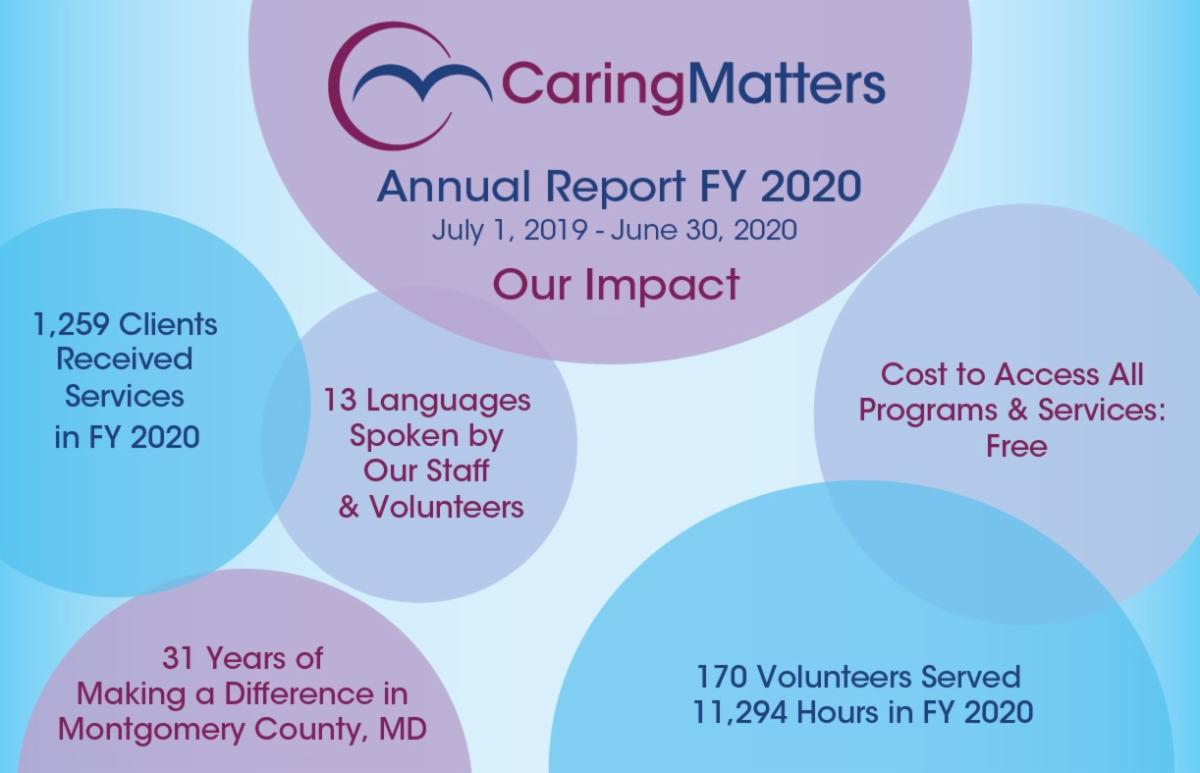 Eva Cowen, CaringMatters' Community Resource Specialist with The Whole You Program, was the guest on a recent episode of Engage@Home, the YouTube Channel of the Montgomery County Caregiver Support Program. Lylie Fisher, the host, talked with Eva about this new program - a partnership between CaringMatters and The Shady Grove Adventist Aquilino Cancer Center, funded by a grant from the Healthcare Initiative Foundation. The program utilizes CaringMatters' trained volunteers to work with adults being treated for cancer or other blood disorders and their families, providing assistance, free of charge, accessing social support services and other community resources.