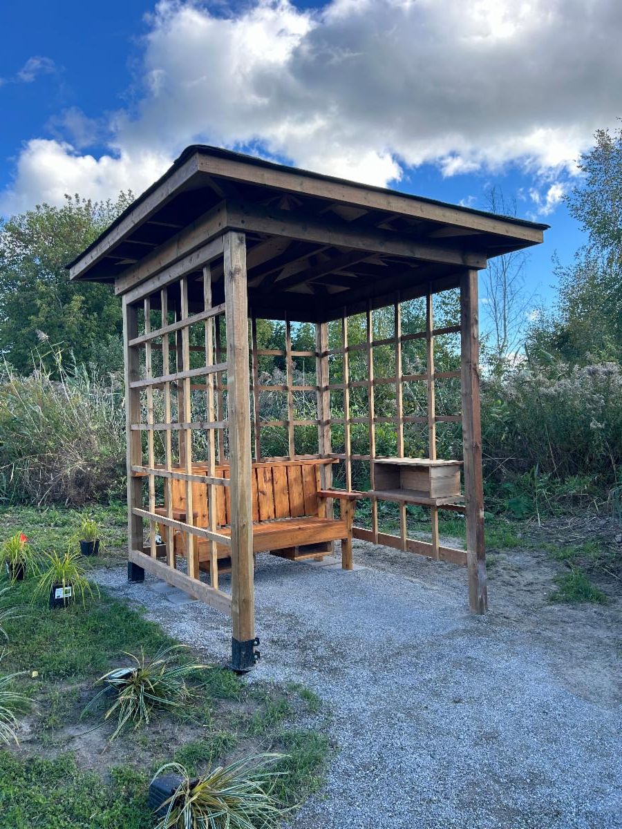 Under the skilled guidance of Lori Groves, Ed’s House Therapeutic Garden Coordinator, the vision of “Life Meets Us In The Garden” is taking shape with the assistance of our garden volunteers. Garden areas have been expanded and two new structures added, a sheltered smoking area at the top of our driveway and in our backyard, a wind phone.