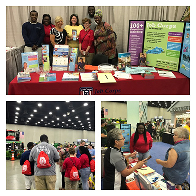 The Carl D. Perkins Job Corps joined other Kentucky Job Corps centers on Aug. 23 to do outreach and recruiting at the Kentucky State Fair in Louisville, KY. Perkins Job Corps staff shared with fair visitors information about the many programs the Perkins Job Corps has to offer. Students also were on hand, giving out information about the Job Corps program and sharing their personal experiences with Job Corps. Students manned the KY Job Corps table with Perkins Business Community Liaison Jimmie Wilson, Kentucky Outreach & Admission Counselors Lisa McCord and Reneco Cisse, and Haydee Vasquez director of Kentucky Career Transition Services. Those students, SGA members and Y2Y student ambassadors, were Jabon Lattimore, Quamesia Holmes, Alexus Nelson and Ja'Qwain Hamlin.