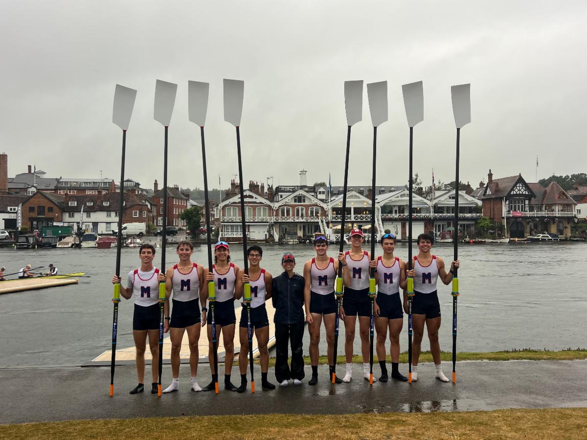 The Mercer Boys competed for the first time ever in the prestigious Henley Royal Regatta (HRR) in Henley-on-Thames, England. All races at HRR are 2 boats racing side by side along a 2,112 meter stretch of the Thames River with wooden booms on each side of the course. The event was first raced in 1839.