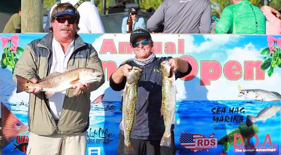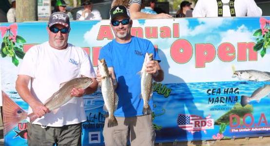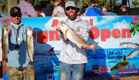 | Martin Simmons & Scott O'Brien from Jacksonville, FL, won 1st Place weighing in at 14.65 lbs, 1 redfish & 2 trout. |