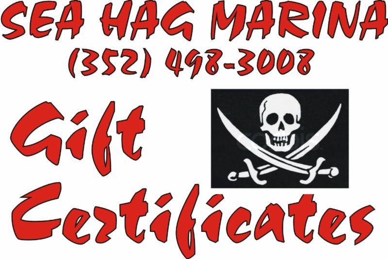 ALL PRICES POINTS AVAILABLE! GIFT CERTIFICATES CAN BE APPLIED TO ANY SERVICES OFFERED AT SEA HAG INCLUDING; STORE ITEMS, RENTAL BOATS AND SHACKS, FUEL, etc.