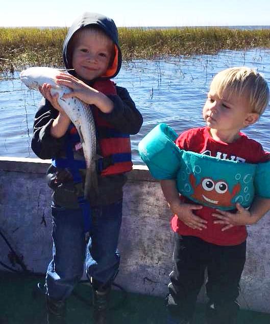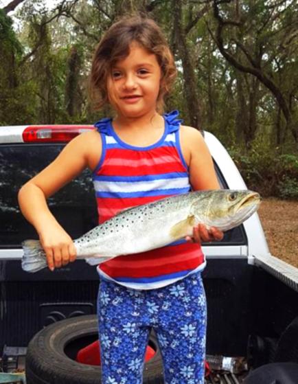 Karlee & her brother, Eathan, hung with the big kids reeling in this big trout to the boat.
