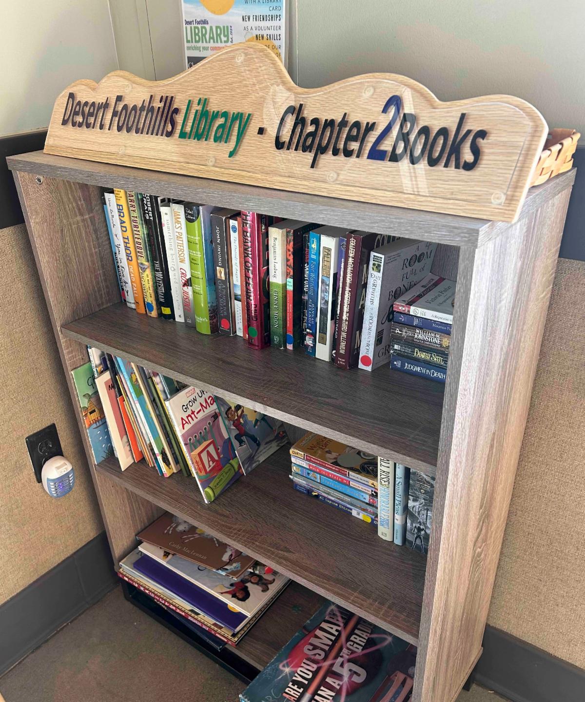 | Desert Foothills Library adult free books at Desert Foothills Family YMCA, 34250 N 60th St, Scottsdale AZ 85266. | Desert Foothills Library children's free books at Desert Foothills Family YMCA, 34250 N 60th St, Scottsdale AZ 85266. | Desert Foothills Library's free books at the Starbucks, 5310 E Carefree Highway, Cave Creek AZ 85331. | Photos & Info: Thanks Dana Tomlinson |
