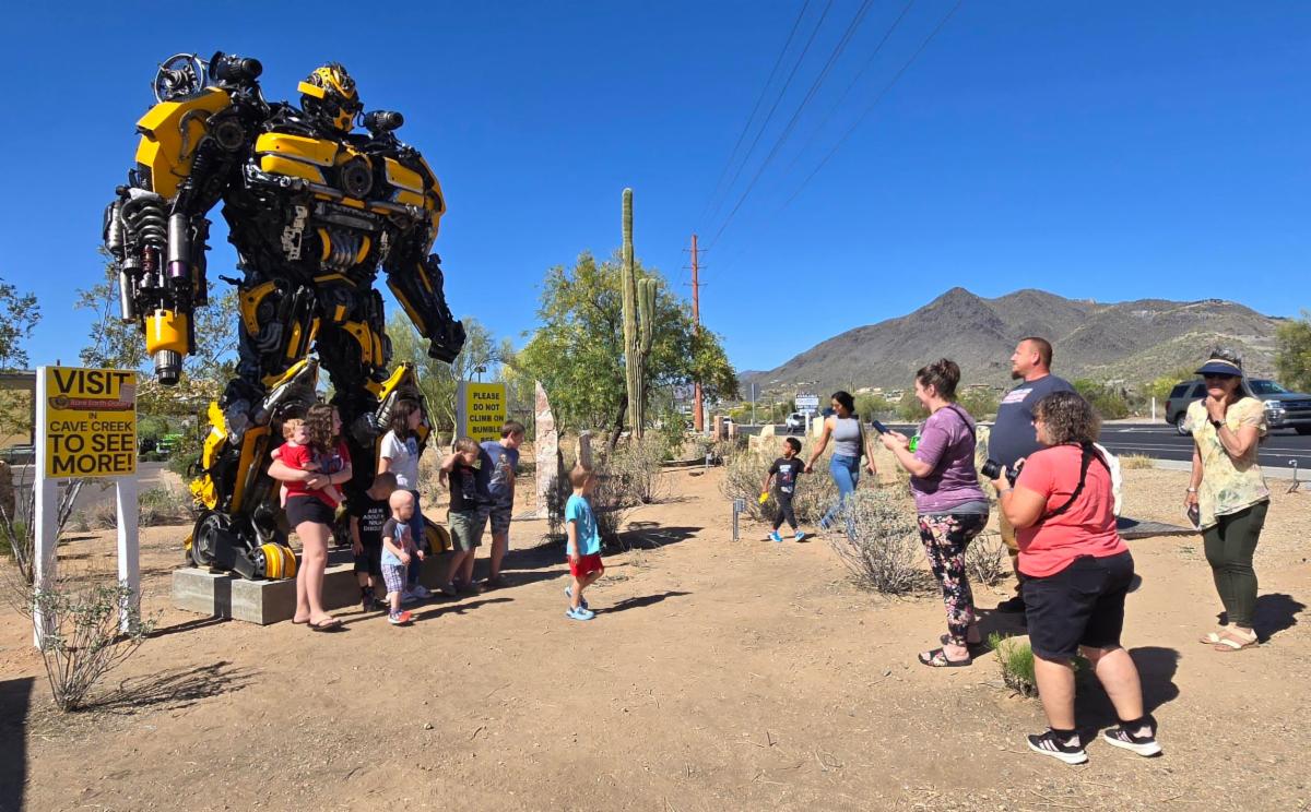 The “Coming Soon” at the corner of Cave Creek Road and Carefree Highway (formerly CVS Pharmacy) is here! Well, almost. What seems to have emerged from the depths of the Earth…Rare Earth Gallery, that is... is a huge “Bumblebee” of Transformer movie fame, and passersby have been drawn to it like bees to honey for photo-opps.