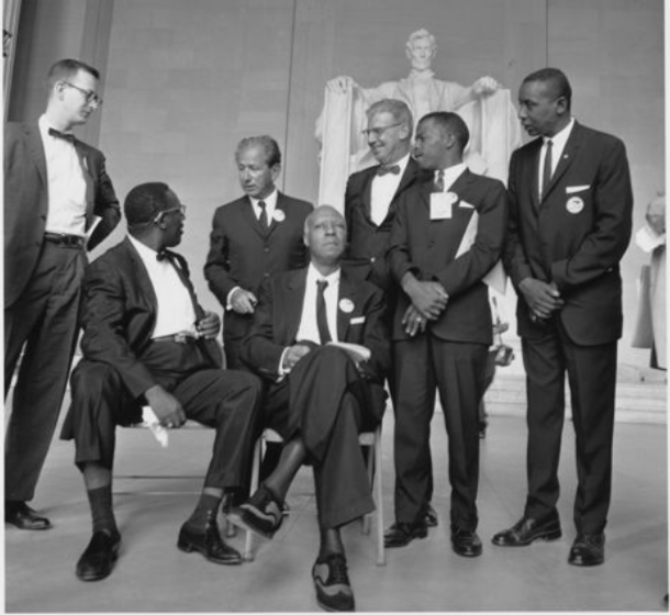 Civil Rights March on Washington, D.C. National Archives, Access and Use Unrestricted. | This is a photograph of President Johnson signing the Voting Rights Act as Martin Luther King, Jr., and other civil rights leaders look on. National Archives, Access and Use Unrestricted. | |
