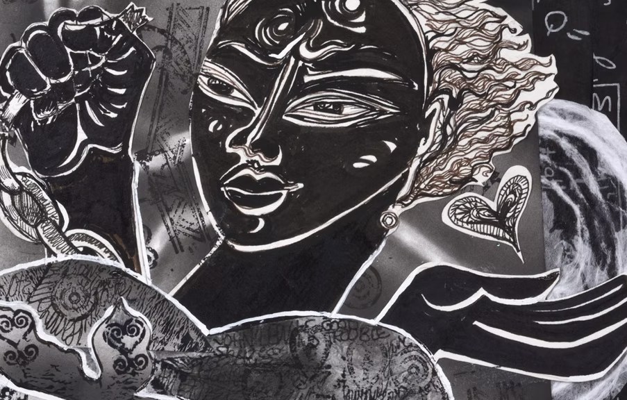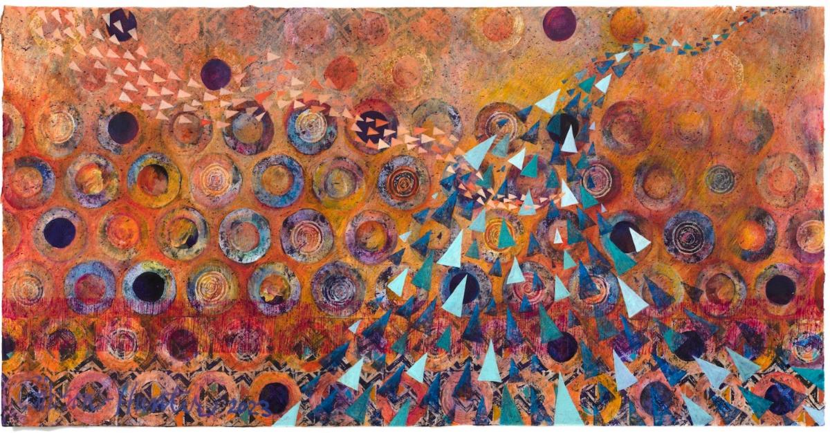 Claudia "Aziza" Gibson-Hunter is a mixed media artist, arts organizer, and educator based in Washington, DC. Known for her narrative abstractionist method, she creates layered works utilizing symbols, color, and texture to explore stories and concepts through metaphor and liberatory imagination. Originally from Philadelphia, Aziza holds a B.S. in art education from Temple University and an MFA in printmaking from Howard University. Her practice spans drawing, painting, printmaking, collage, and papermaking. Deeply involved in teaching and organizing, she draws inspiration from community, family, and her heritage as part of the African diaspora.