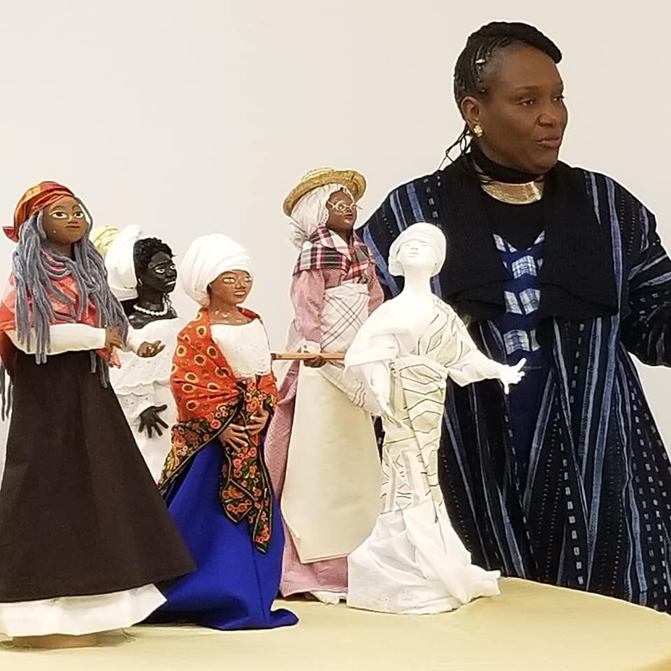 Born in Washington, D.C. (1955), Dickerson-Thompson grew up with the Smithsonian museums as her playground. The Workshop for Careers in the Arts (now the Duke Ellington School of the Arts) laid the foundation for her artistic development. She continued her studies at Simmons University, Massachusetts College of Art, the School of the Museum of Fine Arts, Boston, and Corcoran College of Art. Fellowships and residencies with the AACA and the Village of African-American Doll and Puppet Makers have expanded her work and outreach greatly. BADC and the Dandelion Black Women's Collective (Dandi9) have helped empower her work and deepen the research and expand the outreach.