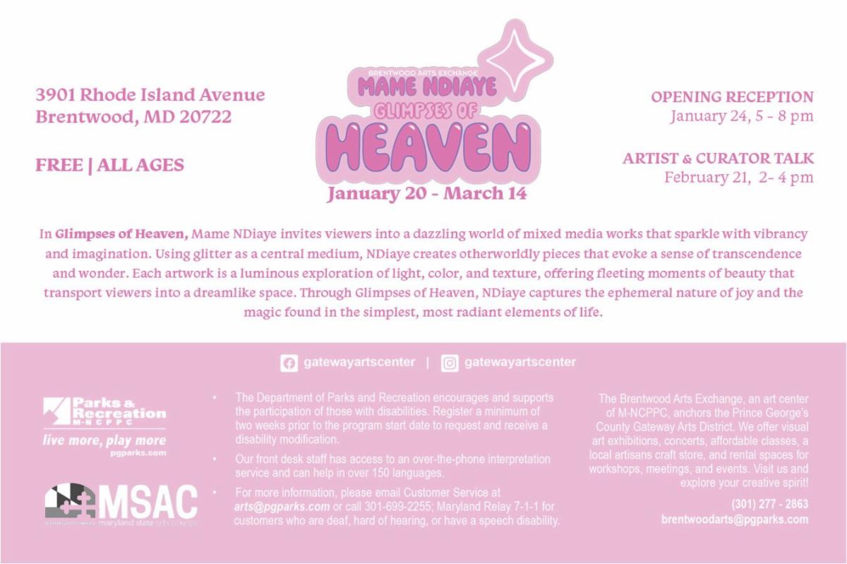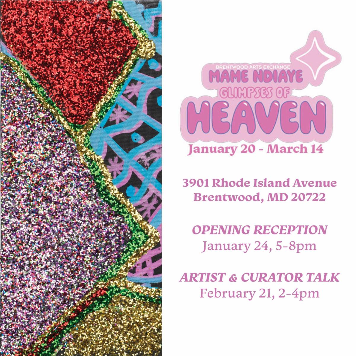 Join us for Tuesday, February 4th at 7PM for Glimpse of Heaven: In the Studio with Mame NDiaye, an award-winning visionary multimedia artist and an advocate for neurodivergent people. She is currently exhibiting at Brentwood Art Exchange in her first solo show. In this talk, she and her family trace her development as an artist navigating life as a uniquely talented and self-declared “weird” individual.