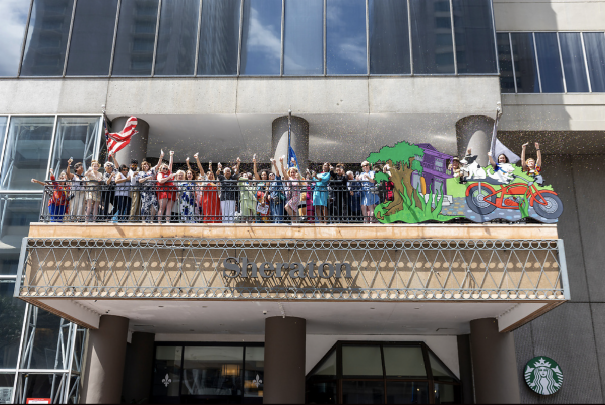 What a spectacular month it’s been on Canal Street! After months of planning and collaboration, we officially launched Windows on Canal on Friday, May 16, with a joyful Champagne Toast hosted by our incredible partners at Sheraton Hotel New Orleans. From the specially crafted nectar sundaes (a tribute to the legendary Waterbury’s Drug Store) to the inspiring words shared by artists, store owners, and supporters, it was a day to remember. The installations are now up at seven amazing locations: Canal Place, Hyatt Centric, Palace Café, Rubenstein’s, Ruby Slipper, Saenger Theater, and Sheraton Hotel—on view until July 7. Make your way downtown to see them while you can!