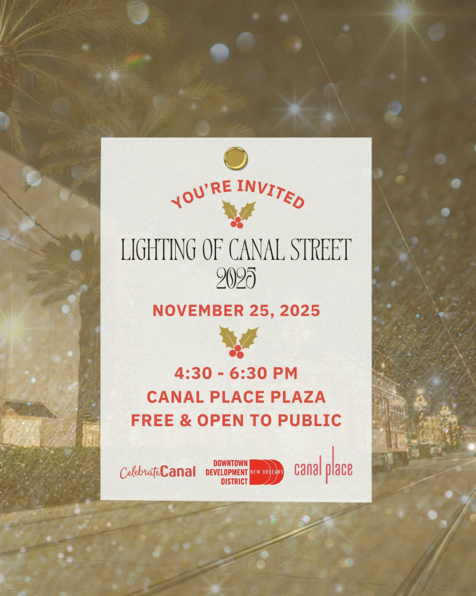 Please join @downtownnola and its partners at @canalplacestyle and @celebratecanal to welcome the holiday season and deck the streets of Downtown at our annual Lighting of Canal Street celebration on Tuesday, November 25, from 4:30 to 6:30 PM at Canal Place Plaza (333 Canal Street).