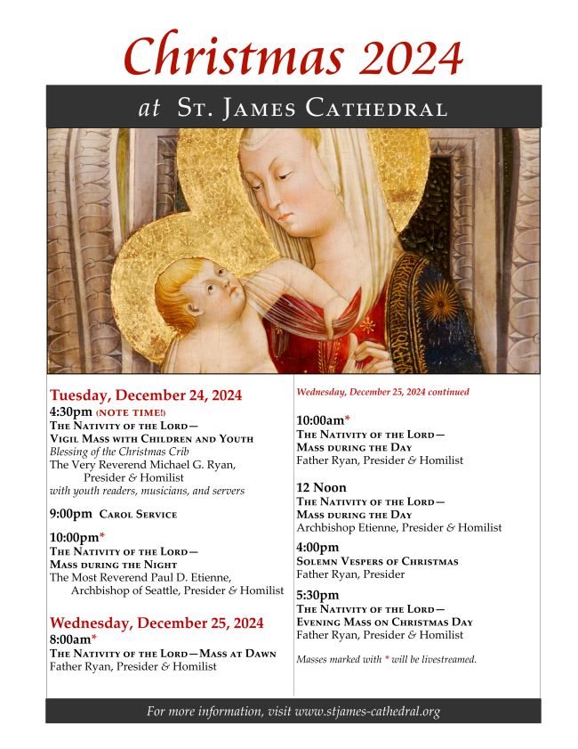 Our neighbors at Sorrento Hotel are offering a special rate for Cathedral parishioners who would like to stay downtown after Christmas Eve or Christmas Day Masses. Thank you, Sorrento!