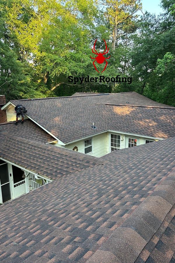 I wanted to express my appreciation for your assistance in getting the new roof on our house. It is gorgeous, and I now have confidence in its watertightness and durability. I encourage you to work with Ulysses and the crew at Spyder Roofing on similar projects in the future. They were friendly and efficient in their efforts, which were completed in about 12 hours. They clearly communicated that they needed a place to park a trailer for trash. I gave them permission to park it on an azalea bush, aside from which they took pains to avoid damaging the trees and flowers around the house. With my input, they were able to drape tarps over small, delicate Japanese maples and azalea bushes at the walls of the house and relocate potted plants away from the work area. They even cleared and disposed of my accumulation of bagged trash in the carport.