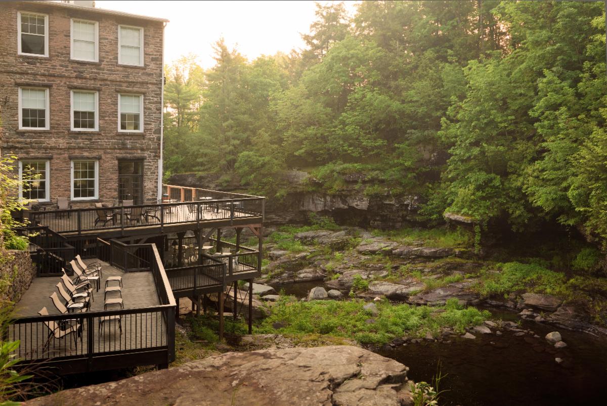 Perched on the edge of Wallenpaupack Creek in Hawley, Pennsylvania, amid the breathtaking scenery of the Pocono Mountains, Ledges Hotel is a tranquil destination with a fascinating industrial history. The Federal-style building dates to the 1890s, when it served as the J.S. O’Connor American Rich Cut Glassware Factory, one of the largest of its kind in the United States at the time. For Preservation Month, use code NHP for 20% off the best available rate (blackout dates apply).