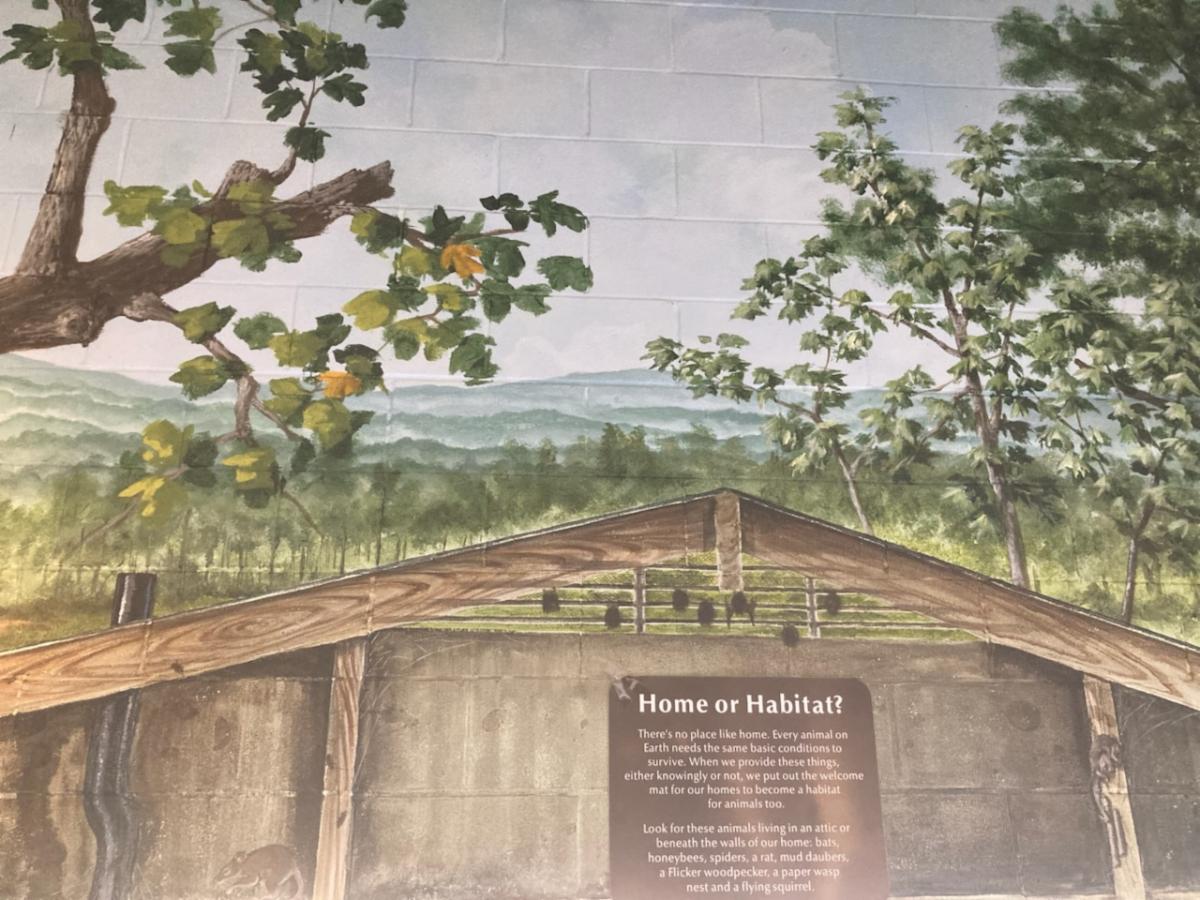 Do You Know the animals most likely to find your home as a perfect hideout during the winter? In our Ecology Lab in Harrison Hall of Natural Science, look for these animals in the attic or beneath the walls of the house in the mural above and around our Backyard Habitat observation window: bats, honeybees, spiders, a rat, mud daubers, a Flicker woodpecker, a paper wasp nest and a flying squirrel. | |