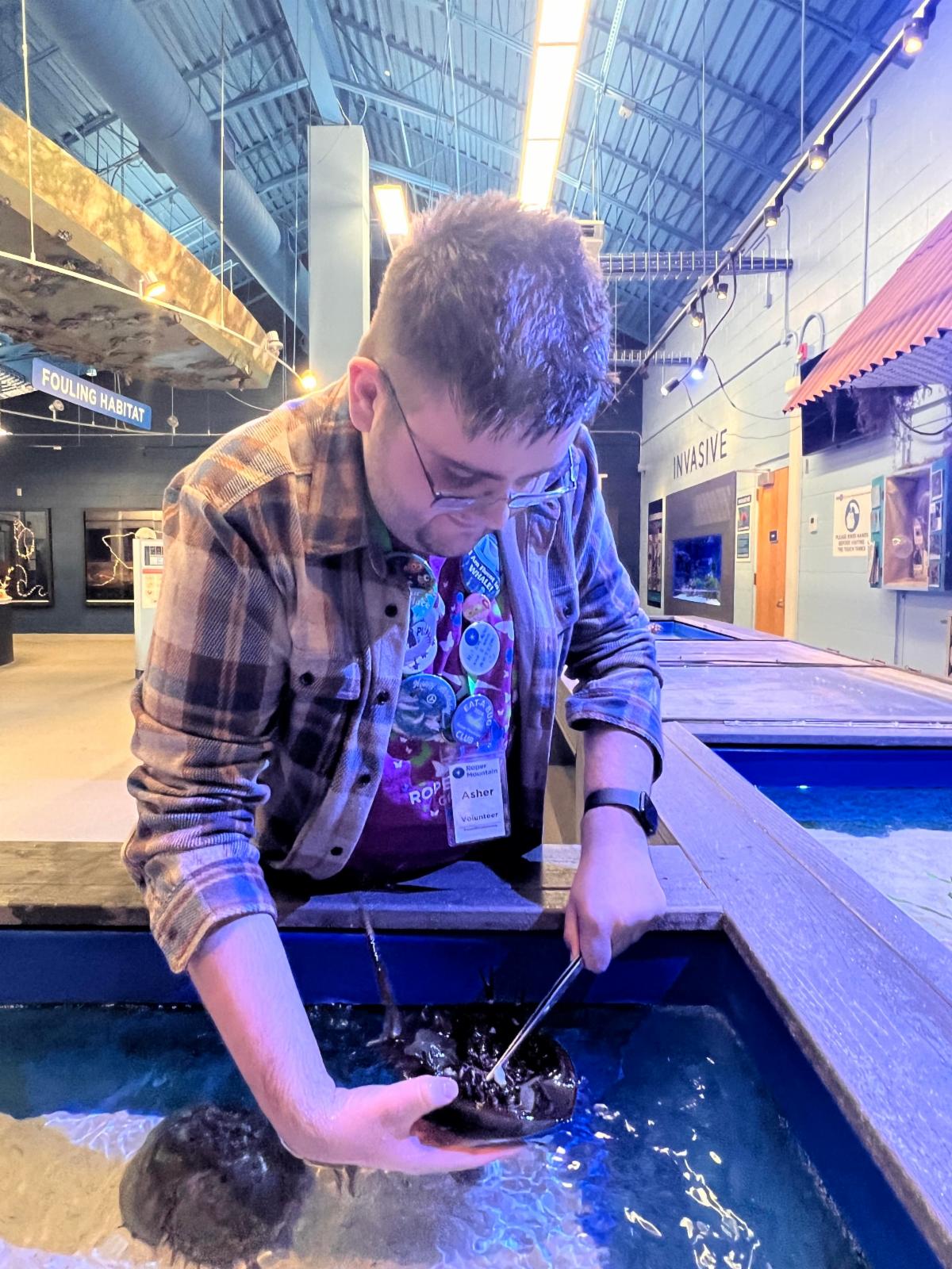 Meet Asher! Asher is one of our newer volunteers at Roper Mountain! You can find him on Thursdays in his happy place, the Marine Lab! Asher graduated from Hope Academy last year. He came to us through participation in the Pre-Employment Program through the Barbara Stone Foundation. This program helps people with disabilities prepare for and find meaningful work. Asher was diagnosed with Autism at 3 years old and for even longer, his love and interest has always been sea creatures.