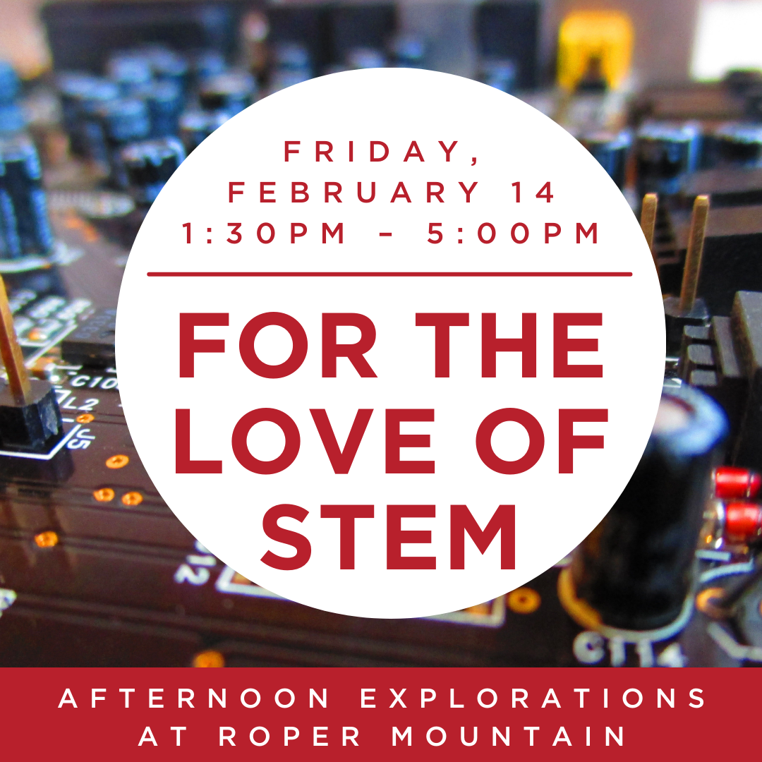 For the LOVE of STEM event is here! Visit Roper Mountain on February 14th to learn more about why our community partners love their careers in STEM.