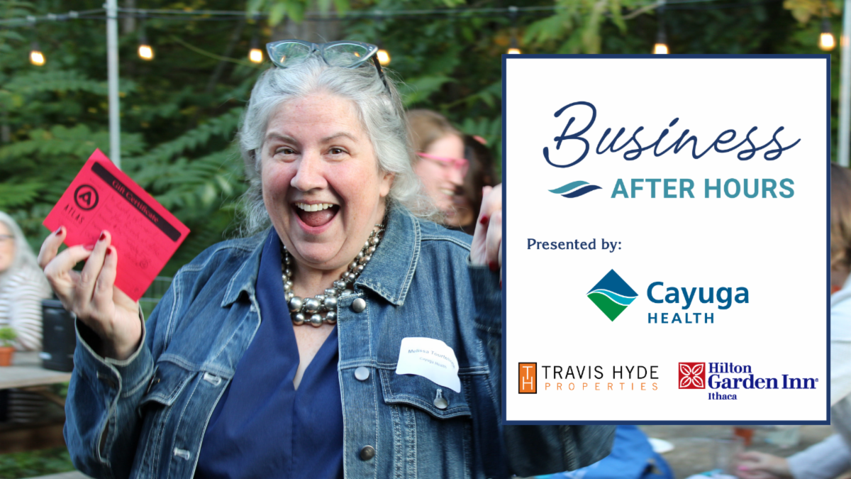 Thank you to our Business After Hours sponsors: Cayuga Health, Hilton Garden Inn, Travis Hyde, Sciarabba Walker & Co. LLP, and One Step Coaching and Consulting.