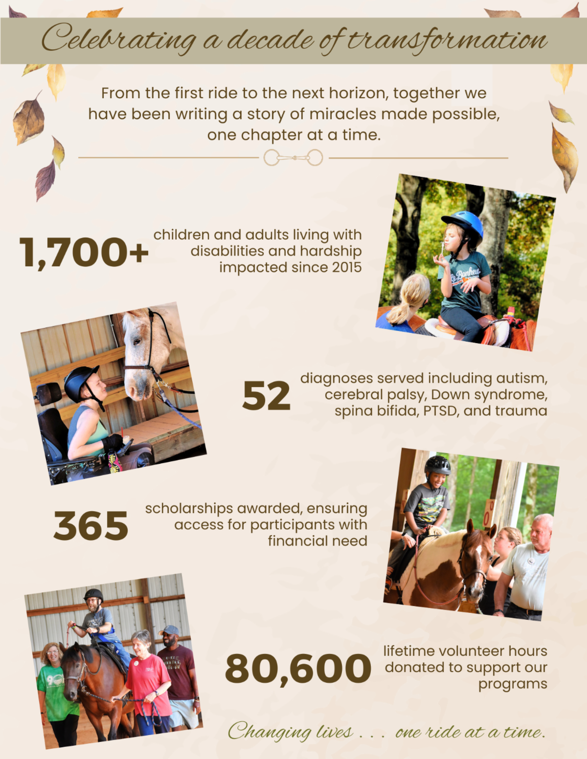 LOur Mission: To serve individuals with physical, cognitive, and emotional disabilities and hardship by providing equine-assisted services to empower, inspire, nurture and succeed.